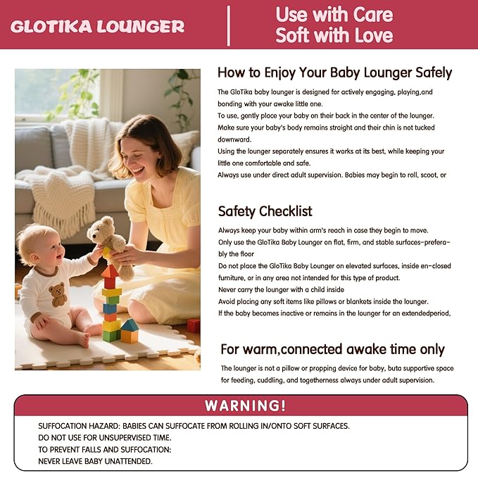 • Safe and Comfortable Design: Our baby lounger features a wrap-around design that ensures your baby's safety while providing comfort with soft, high-quality materials.