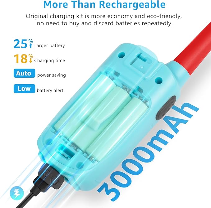 • 【Cost-Effective & Planet-Friendly】:Why keep buying batteries? With the USB rechargeable walkie talkies, say goodbye to repeatedly buying and trashing batteries. The original charging kit ensures you stay planet-friendly while saving money. The USB fast charging cable is also more convenient for charging anytime, anywhere, such as charging from a PC, car charger or power bank