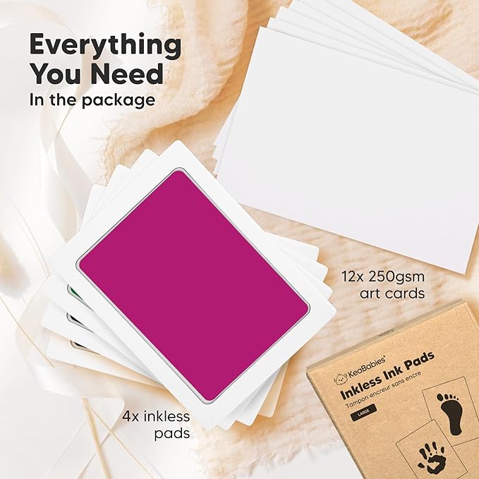 • 12 x 250GSM Art Cards - Your little one is perfect; so are their hand and footprint. Use the additional art cards to stamp multiple hand, foot or paw print. Choose the best artwork for your desired displays. Refer to our step-by-step instruction manual on how you can achieve the best results.