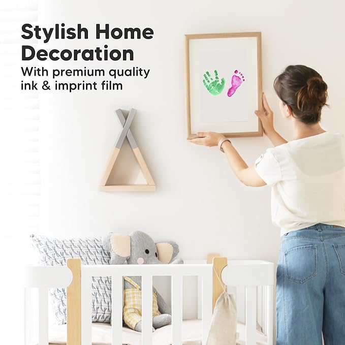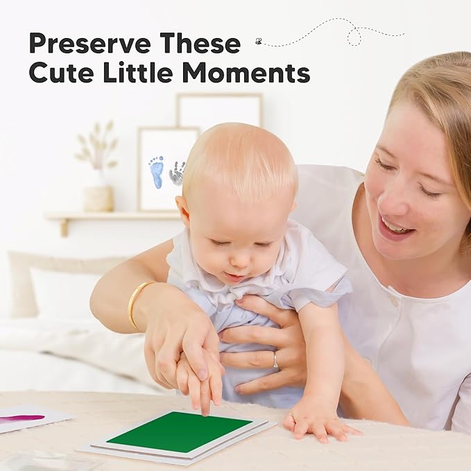 • No Mess, No Residue - Designed to create your baby's hand and footprints without leaving ink residue on your baby’s hands and feet. Our clean touch ink pads use a “zero ink contact” imprinting method to allow beautiful stamping of your baby’s hands and feet on art cards, memory book journals and other paper-based baby keepsakes. Mess free ink pad for babies.