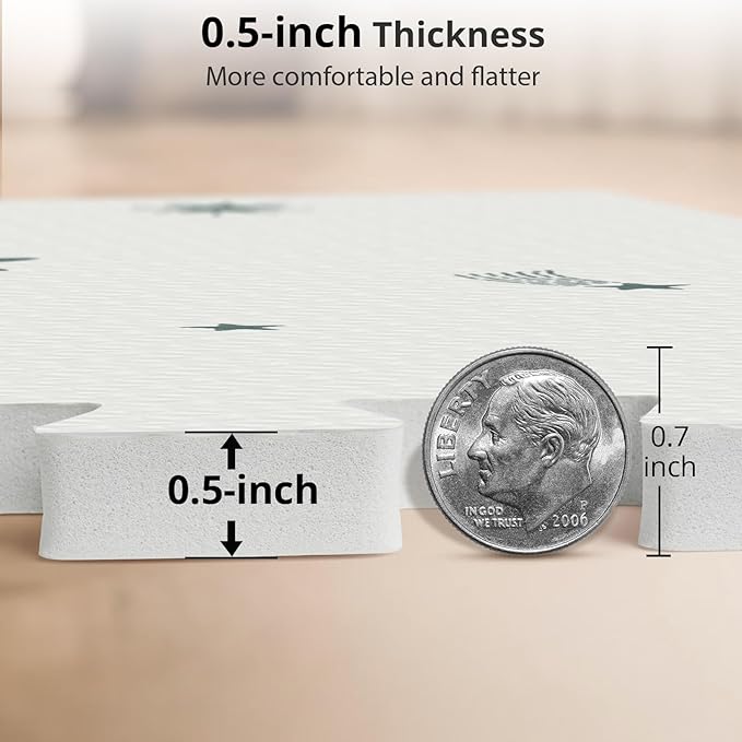 • MAXIMUM SAFETY: The 0.5" thick foam flooring tiles create a safe play area for little ones. Made from certified EVA foam through a batch process, The floor pads for babies ensure premium quality and are free from BPA, PVC, and other harmful substances.
