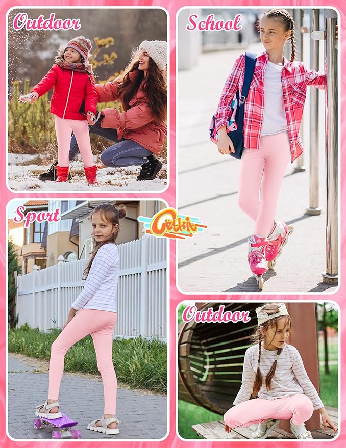 • 【Stays in Place】 Our pull-on leggings for kids have high shape retention and a soft, unrestricted elastic waistband to keep them in place. These pink pants for girls feature flatlock seams that provide comfort and create a classic look. Even with frequent and heavy wear, these girls' leggings maintain their accurate size.