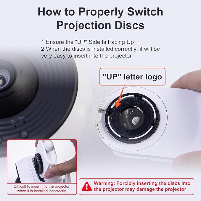 • 【13 IN 1 Nebula Projector】 - Star projector galaxy light comes with 13 display scenarios: Solar System, Earth, Moon, Virgo Supercluster, Centaurus A, Black Hole, Antennae Galaxies, Wormhole, the Milky Way, Mystic Mountain, Sharpless 2-308, Small Magellanic Cloud, and Laniakea Supercluster. Each projection card has an introduction to the galaxy, helping you know more about space. PLEASE MAKE SURE the "UP" letter faces upwards when installing. Note: 13 projection cards total, 1 pre-installed in the projector