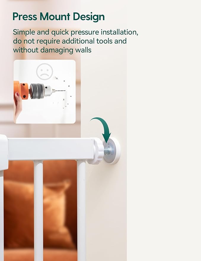 • Easy Installation: No screw needed.Pressure mount design for fast and safety installation while protecting your walls.Notice: please measure your openings before purchasing to ensure proper fit