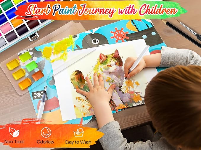 • 【61 PCS All in One Art Kit】The Premium watercolor set includes 38 regular colors, 8 metallic colors, 4 fluorescent colors, 1 water brush pen, 6 detail paintbrushes, 1 art sponge, 1 swatch sheet, 1 nylon paintbrush, 1 transparent palette, total 61 pcs!