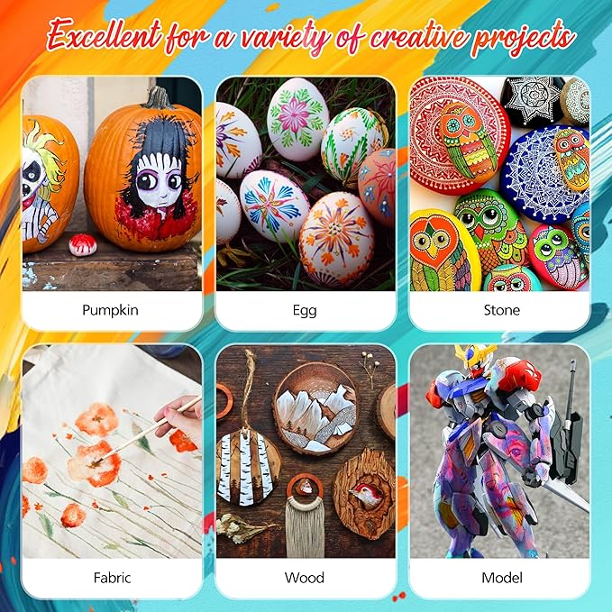 • 【Excellent Arts & Diy Craft Supplies】Caliart water color set are versatile in canvas art, painting, scrapbooking, Easter, Christmas, Halloween decorations and more. Suitable for most surfaces, including canvas, wood, rocks, painting pumpkins, stretched canvas, fabrics, stone, metal, plastic, ceramics, decorative wall, blackboard, paper, plaster.