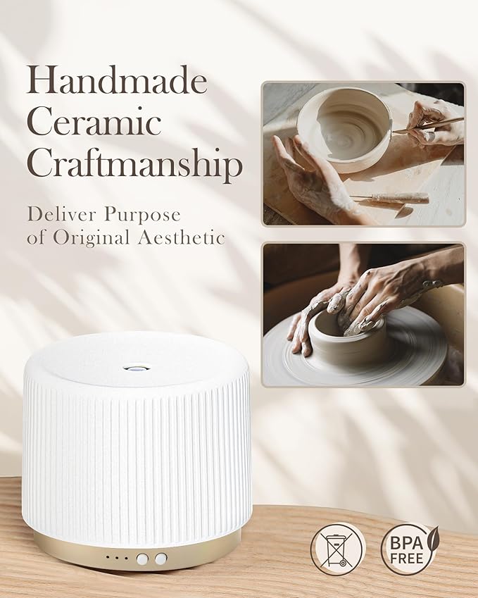 • 【Multi-Functional】 This all-in-one ceramic diffuser acts as an aroma diffuser, humidifier, and nightlight. It helps moisturize the air, lift your mood, relieve stress, and improve sleep quality