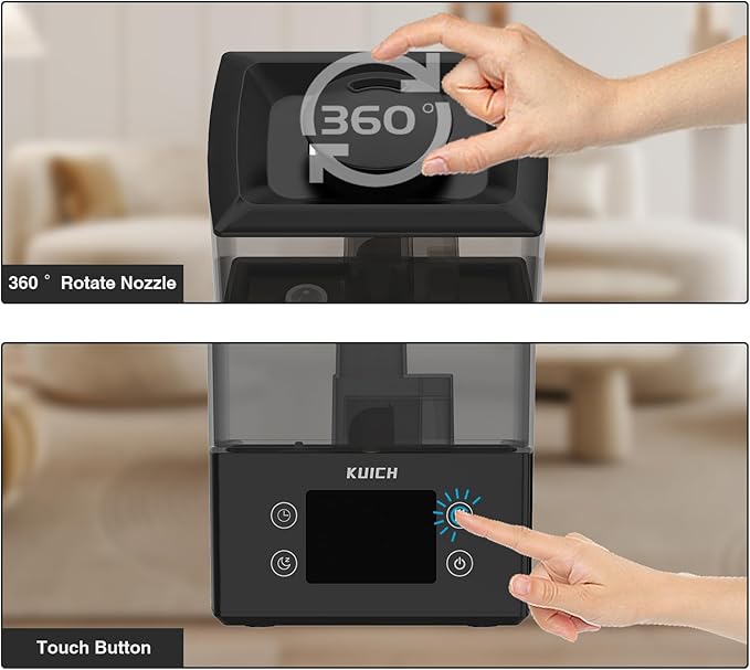 • 【Adjustable Mist Levels and Timer Function】- Customize your experience with high, medium, and low mist levels, as well as an automatic mode. The maximum mist output reaches 240 ml/hour. The automatic mode adjusts mist output based on the built-in humidity sensor, maintaining optimal humidity levels. The timer mode allows you to set operation times from 1 to 12 hours, providing control according to your schedule. The 360-degree nozzle enables flexible mist direction adjustment for comprehensive control.