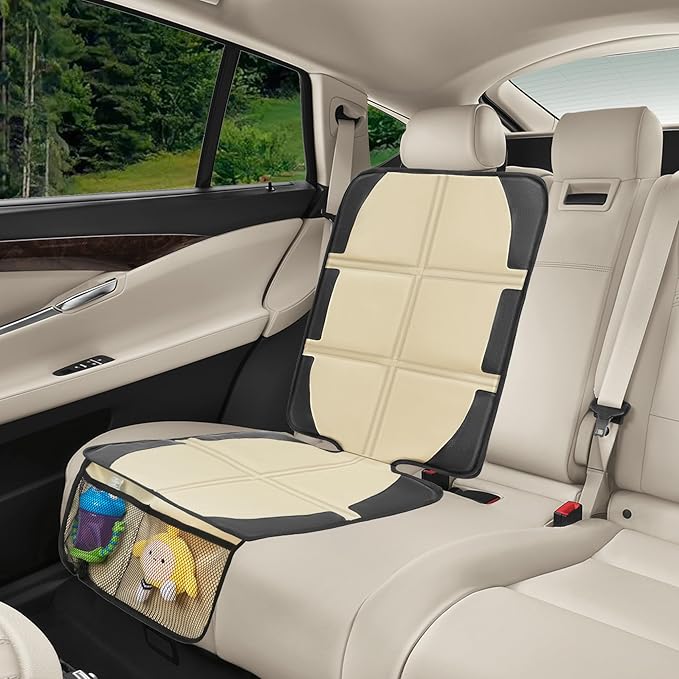 Car Seat Protector for Child Car Seat, 2 Pack Baby Car Seat Covers with Mesh Pockets & Non-Slip Backing 600D Durable Seat Protector Under Baby Car Seat for Car Back Seat (Beige, Large)