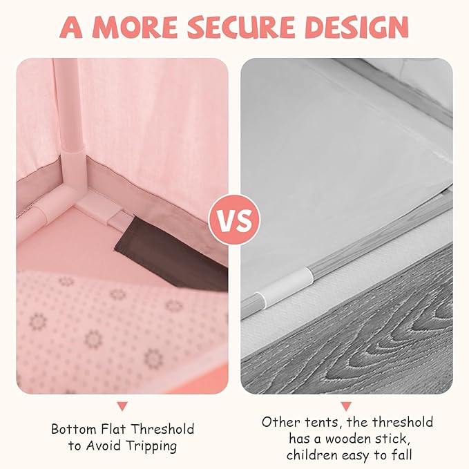 • ✨ANTI-TRIP DESIGN:Our children's tent is different from other tents in that the door is designed to be invisible threshold. Tent bottom close to the ground, children in and out of the tent will not trip or fall, very safe and reliable. Generally, the threshold of the tent door is a stick or a round pipe. When the children get in and out, they are likely to get wrestling.