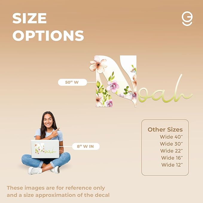 • 📏 MULTIPLE SIZE CHOICES: Tailor the name decal to your space effortlessly with multiple size options. Whether you want small flower stickers decoration or a big flower decor piece for your wall, our range of sizes ensures the perfect fit for any wall in your girls room. We believe in offering flexibility. Explore our vinyl letter stickers collection with various size options: Wide 8", Wide 12", Wide 16", Wide 22", Wide 30", and Wide 40".
