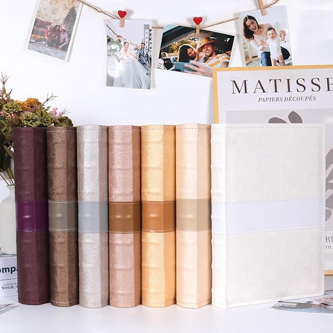 • 【Premium Quality Leather Cover】Photo albums with writing space are made of premium quality leather which can last for years ,keep photos protected and intact at all times. Rose pattern cover, beautiful and stylish