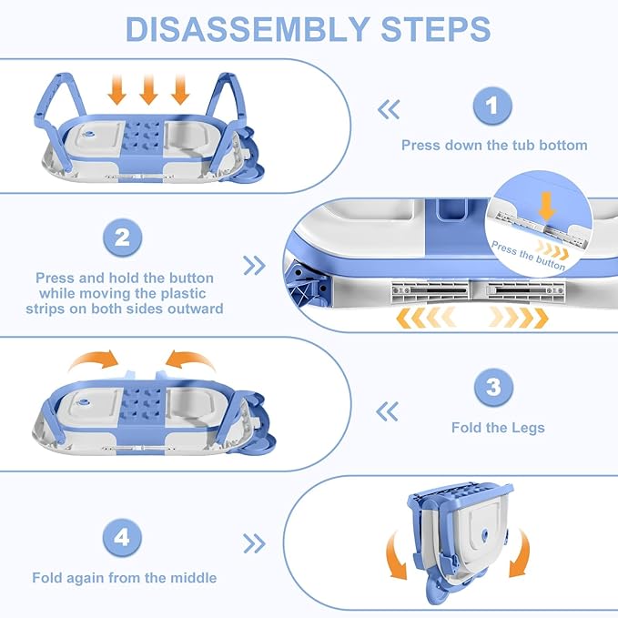 • Double-Fold Collapsible Design: TPN collapsible baby bathtub features an ingenious double-fold design, compactly measuring less than 4 inches in thickness. This facilitates effortless storage in any corner and enhances portability for on-the-go convenience, making it a perfect companion both at home and during travel. The off-the-floor drain with a user-friendly rubber plug guarantees seamless draining without the need for relocation.