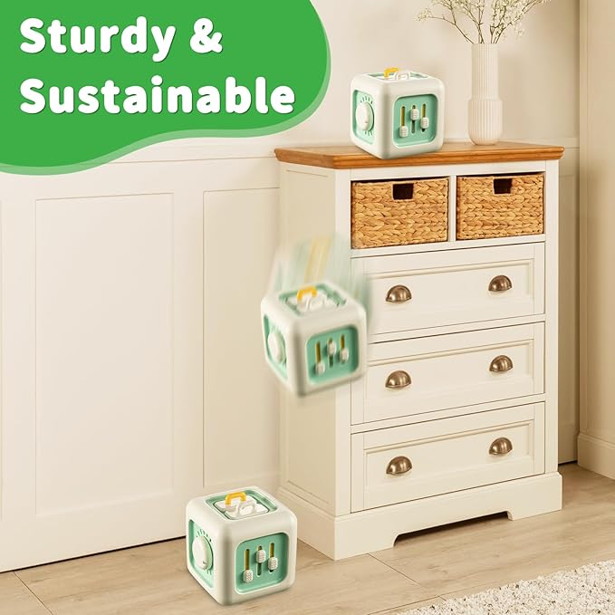 • [Well Made with Quality Care] Our sensory cube is crafted from non-toxic, BPA-free materials with sanded edges to ensure your child's safety during hours of engaging play. Please note: Keep it clean by wiping with mild detergent and a damp cloth, and avoid prolonged exposure to direct sunlight
