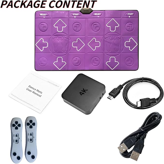• 【Plug& Play for TV】The Dance mat is very easy and convenient to install, just use HD-MI to connect TV.Dance mat is equipped with the latest version of the chip, the maximum effect to ensure that in the process of using to maintain a stable, clear picture quality output.Dual controllers allow you to share the joy of the game with your family and friends.