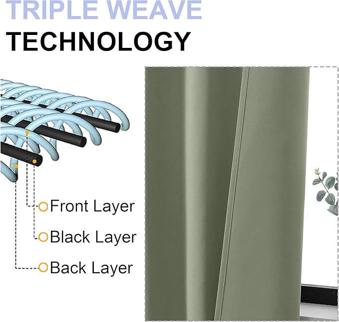 • High-Quality Materials: Crafted from high-quality polyester fiber, guarantee both stiffness and drape. This soft yet durable light-blocking fabric boasts a three-layer weave, with a middle layer of black yarn acting as an effective light-blocking panel, effectively blocking light while providing privacy. The identical colors on both sides further enhance its aesthetic appeal, adding a touch of elegance to your home.