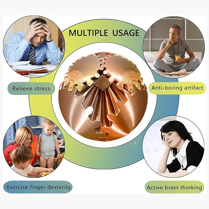 • 【3d Printed Gear Ball】The spin ball is an innovative finger toy designed to provide stress relief and anxiety reduction effects. GearSphere - The Steampunk Whirling Wonder Fidget is made of high-quality 3d printed materials with a smooth surface and durable structure.