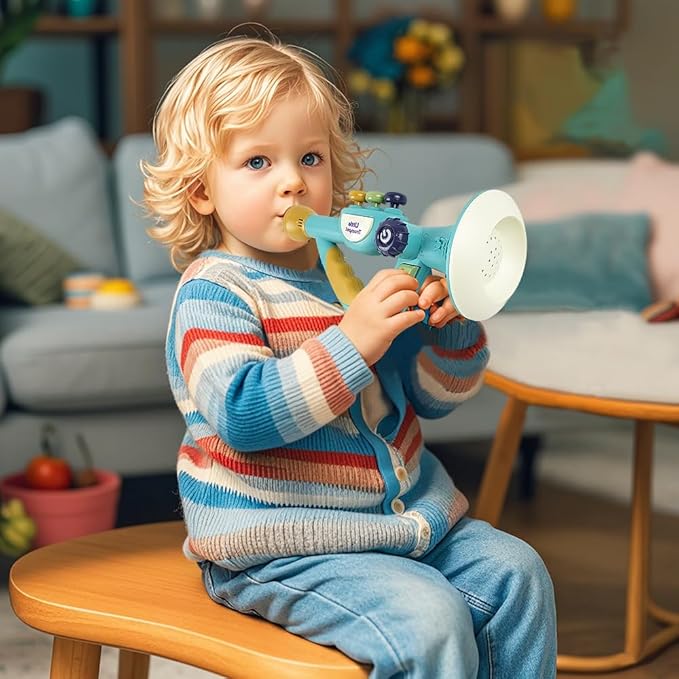 • Funny musical toys for toddlers: Multifunction trumpet toy with light and musics; Cute 16 Holes Harmonica; Kid-friendly Recorder Flute. This toy set helps to stimulate children's interest in music.
