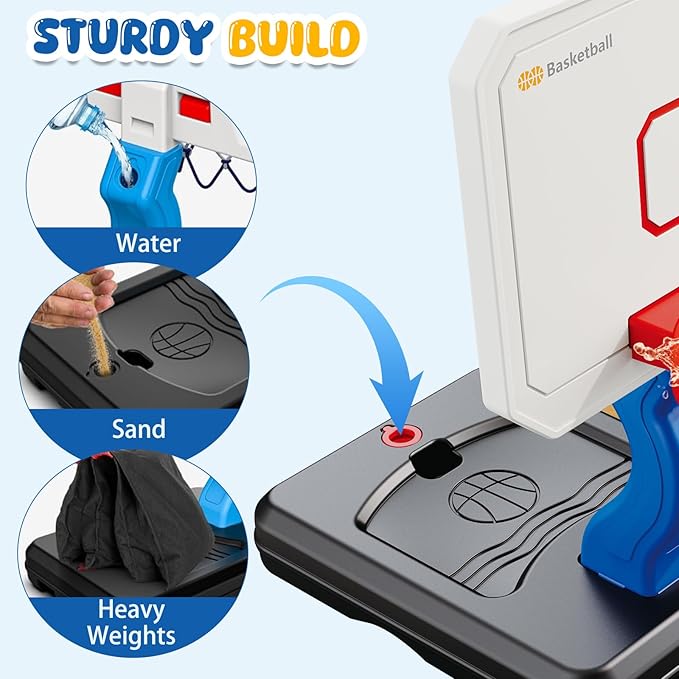 Toddler Basketball Hoop, Adjustable Height 2.3-4.5ft Baby Basketball Goal Set with 4 Balls & Pump, Backyard Poolside Basketball Toy for Boys & Girls Birthday Gift, Blue