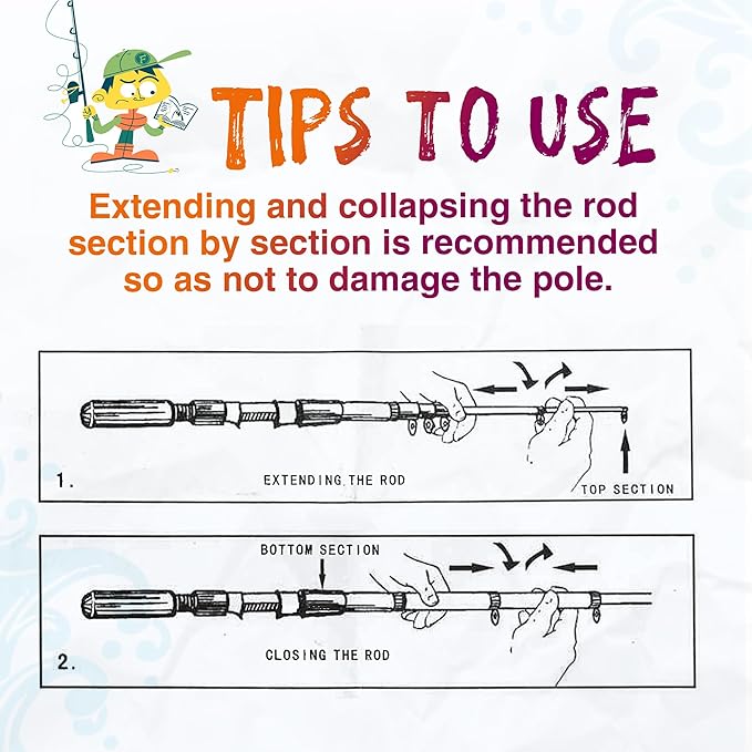 • Convenient Portability: Our collapsible fishing rod makes it easy to transport and store, and you can pack all your fishing accessories into one fishing bag, and you can take them wherever you want, and the fishing bag also provides added protection while on the go. Tips: Extending and collapsing the rod section by section is recommended so as not to damage the pole