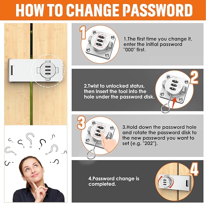 • Password Unlock: The three-digit combination lock is designed to be both secure and convenient. With up to 1000 combinations of passwords, you can set your own exclusive password according to your own preferences or habits, no need to use keys to unlock the door, eliminating the worry of lost keys and providing a certain level of security for your personal belongings