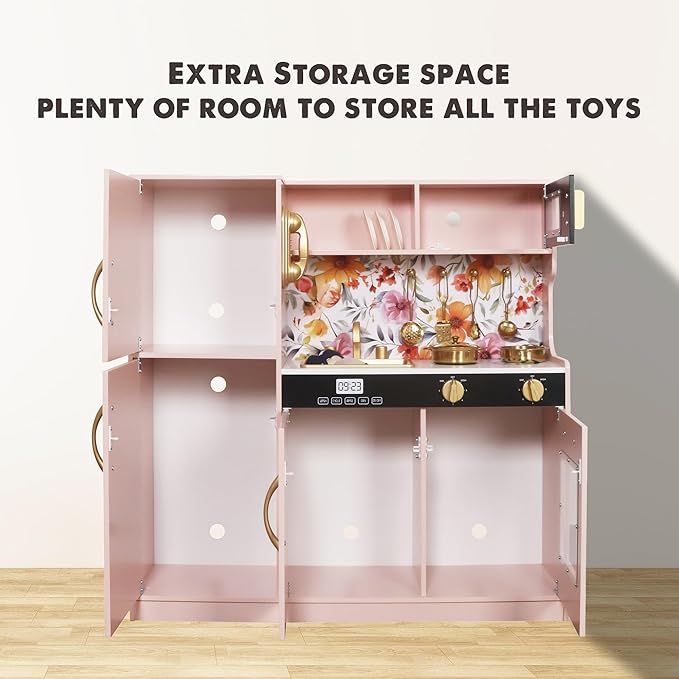 • ๐ŸŽGeat gift- Not only provides fun playtime for young children, but is also important for education. The perfect play kitchen for 3-8 year olds is ideal for creative role play toy and the perfect gift for kids.