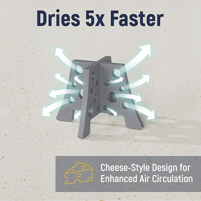 • 【Cheese-Inspired Design, Quick-Drying】Our cup drying rack is inspired by the shape of food cheese, where the designer used the cheese's distinctive, uneven holes as inspiration. Combined with the need for cups to dry quickly, we created a cheese-shaped cup drying rack. The assembled rack offers better ventilation and a more attractive design compared to the cylindrical products available on the market.