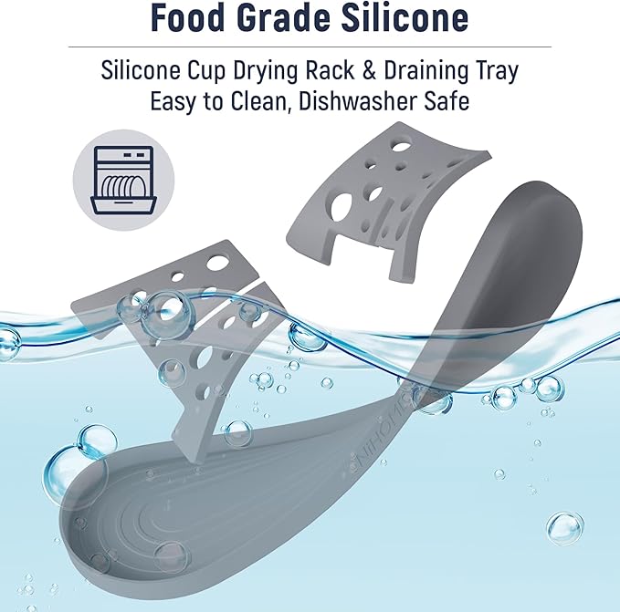 • 【Easy to Clean】 Both the cup drying racks and the drip tray are made of silicone, making them washable, heat-resistant, and dishwasher-safe for easy daily cleaning.