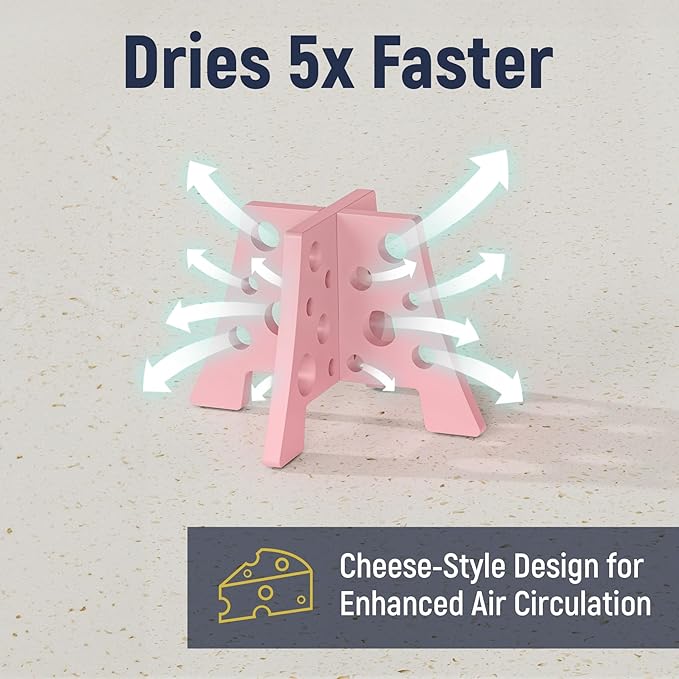 • 【Cheese-Inspired Design, Quick-Drying】Our cup drying rack is inspired by the shape of food cheese, where the designer used the cheese's distinctive, uneven holes as inspiration. Combined with the need for cups to dry quickly, we created a cheese-shaped cup drying rack. The assembled rack offers better ventilation and a more attractive design compared to the cylindrical products available on the market.