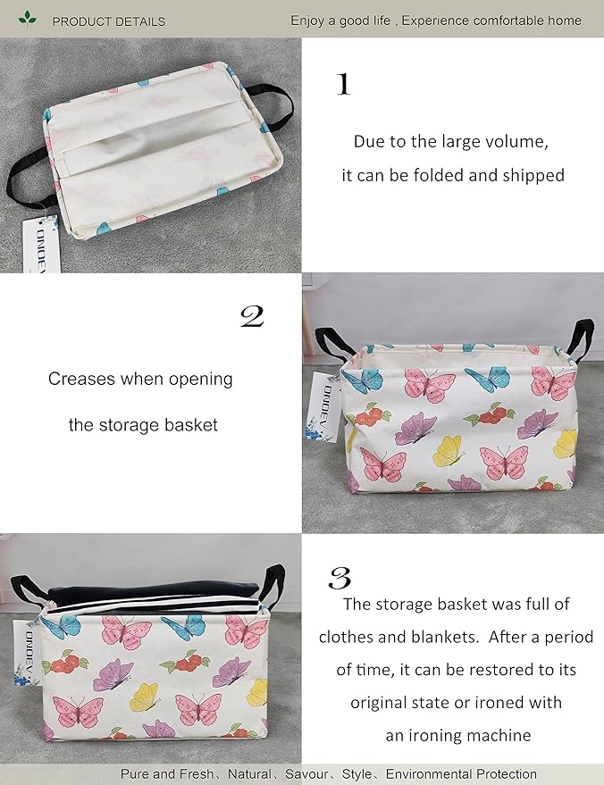 Rectangular Folding Laundry Basket,waterproof Canvas Basket,gift basket,Suitable for children's room,Office,Clothes,Toys Storage(Butterfly)