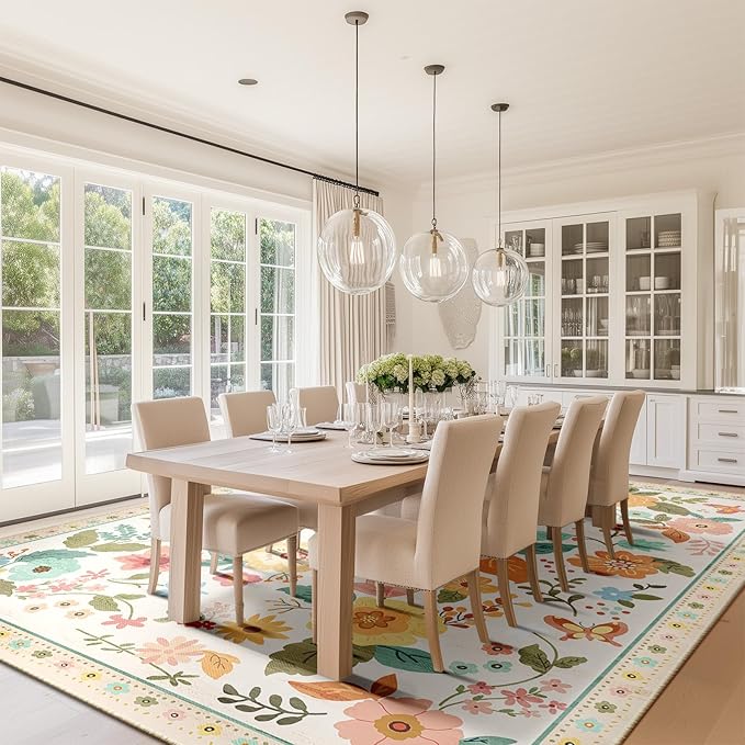 • Soft & Non Slip: Our living room rugs are made of reinforced polyester, providing softness and wear resistance,making it an ideal choice for high-traffic areas and homes with pets. The area rug features a non-slip TPR backing,you don’t need to pay for an extra rug pad.It can prevent slips and falls while keeping the bottom dry.This living room rug offers both comfort and safety for your family