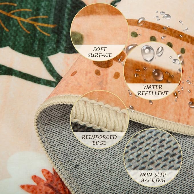 • Machine Washable:The bedroom rugs are machine washable,allowing for both machine wash and hand wash options.It is recommended to wash them in cold water.This floral rug is crafted with a low pile that won’t block opening and closing doors, make machine wash possible.Small stains can be blotted with a rag,soft-bristled brush,vacuum,or robotic vacuum cleaner.Avoid using bleach and high-temperature ironing
