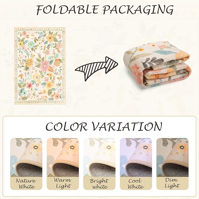 • Machine Washable:The bedroom rugs are machine washable,allowing for both machine wash and hand wash options.It is recommended to wash them in cold water.This floral rug is crafted with a low pile that won’t block opening and closing doors, make machine wash possible.Small stains can be blotted with a rag,soft-bristled brush,vacuum,or robotic vacuum cleaner.Avoid using bleach and high-temperature ironing
