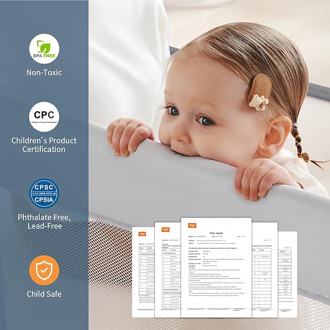 • [HEALTHY & PORTABLE]: Constructed with high-quality, non-toxic materials—including sturdy steel frames and easy-to-clean Oxford cloth—this portable baby play yard folds effortlessly for travel, allowing you to take it wherever you go while ensuring your child’s safety and comfort.