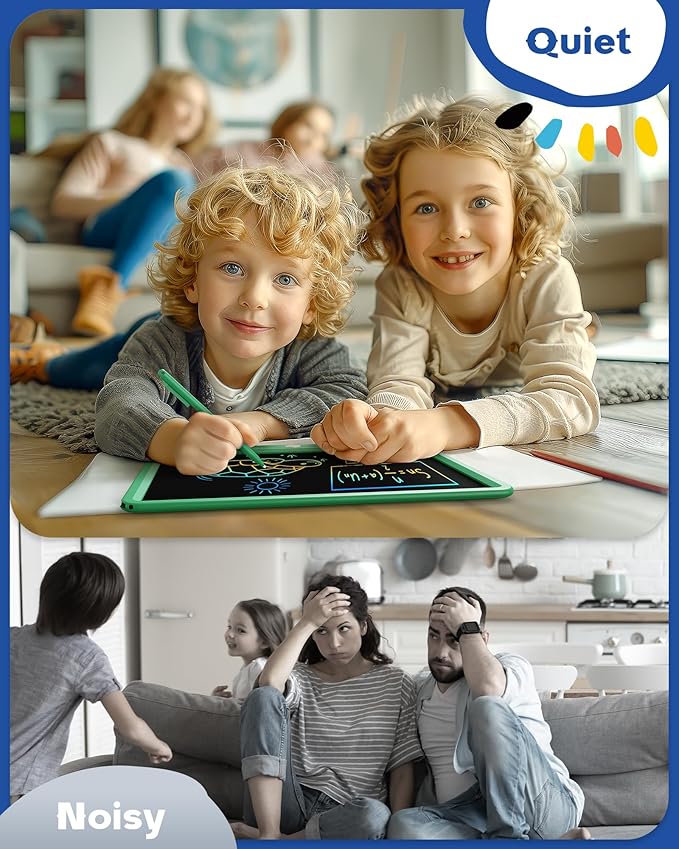 • KEEP NOISY KIDS SLIENT: Are you facing the confusion how to quiet a noisy child?LCD Writing Tablet easily allows children to quietly immerse themselves in the rainbow world. The doodle board also can be used in multiple places: airplane, car, restaurant, sofa, etc. The perfect travel essentials for kids!!!