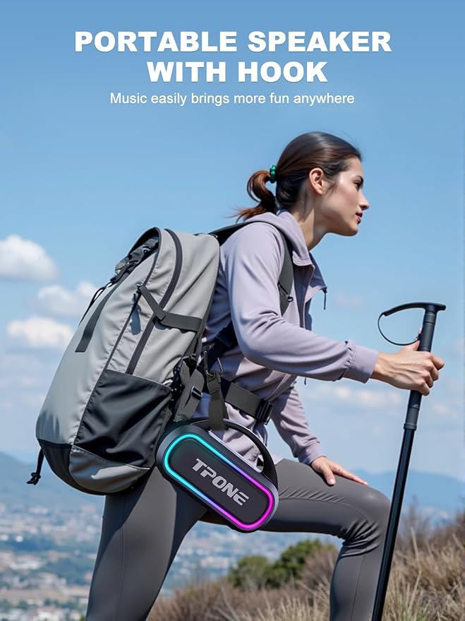 TPone Portable Bluetooth Speaker, 30W Peak, 12H Playtime, IPX5 Waterproof with Light, TWS Pairing, Wireless Speaker for Home/Party/Outdoor/Beach, Birthday Gift (Black)