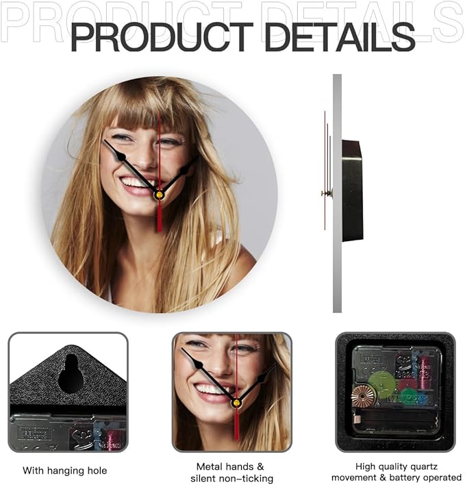 • 【Personalized pictures clocks】Please click the“customize now“button at upper,upload your customized photo and add text.Stretch photo to fill the entire printing area.Submit high definition images for better print results.