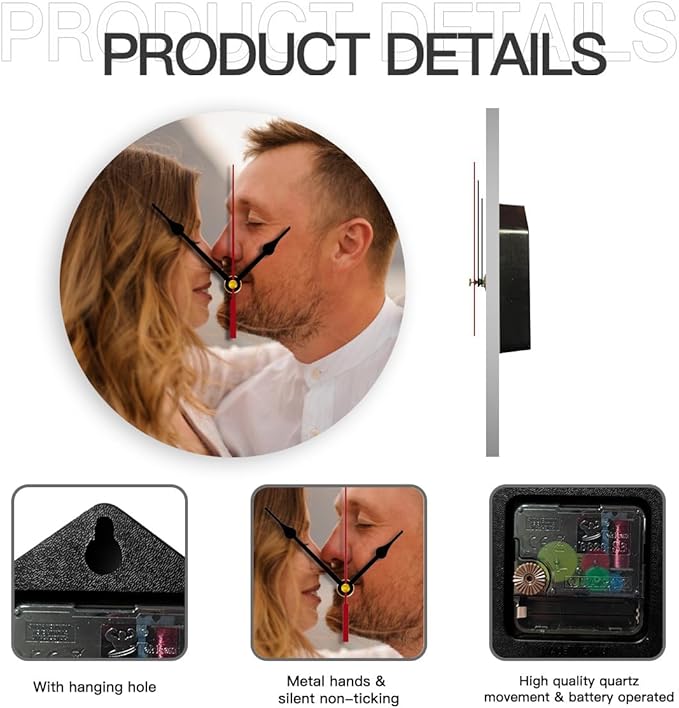 • 【Personalized pictures clocks】Please click the“customize now“button at upper,upload your customized photo and add text.Stretch photo to fill the entire printing area.Submit high definition images for better print results.