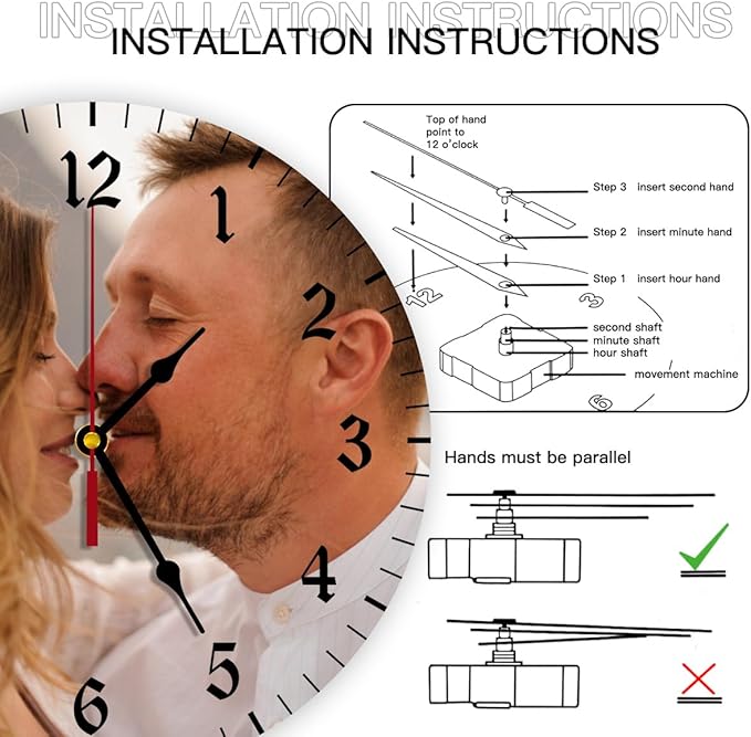 • 【Personalized pictures clocks】Please click the“customize now“button at upper,upload your customized photo and add text.Stretch photo to fill the entire printing area.Submit high definition images for better print results.