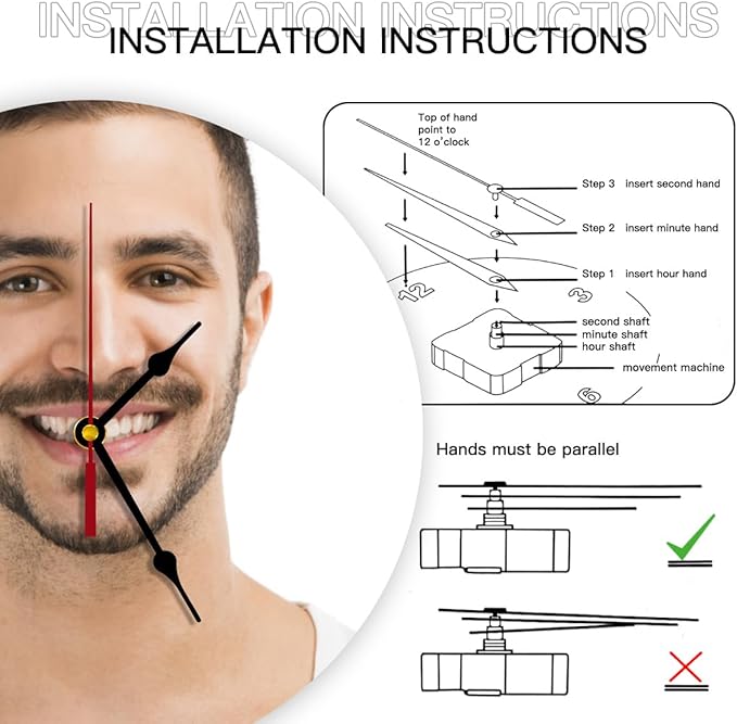 • 【Personalized pictures clocks】Please click the“customize now“button at upper,upload your customized photo and add text.Stretch photo to fill the entire printing area.Submit high definition images for better print results.