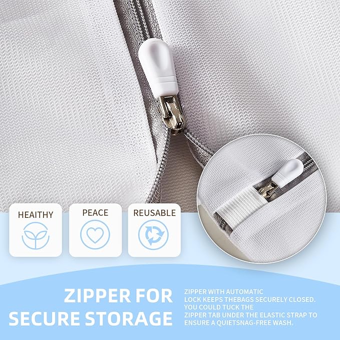 • Design: Our high quality rust-proof zippers have a ribbon hanger tag above them for easy hanging, and the zipper comes with an automatic lock and smart zipper protection to prevent the bag from opening during washing and drying cycles. You will have a quiet laundry experience.