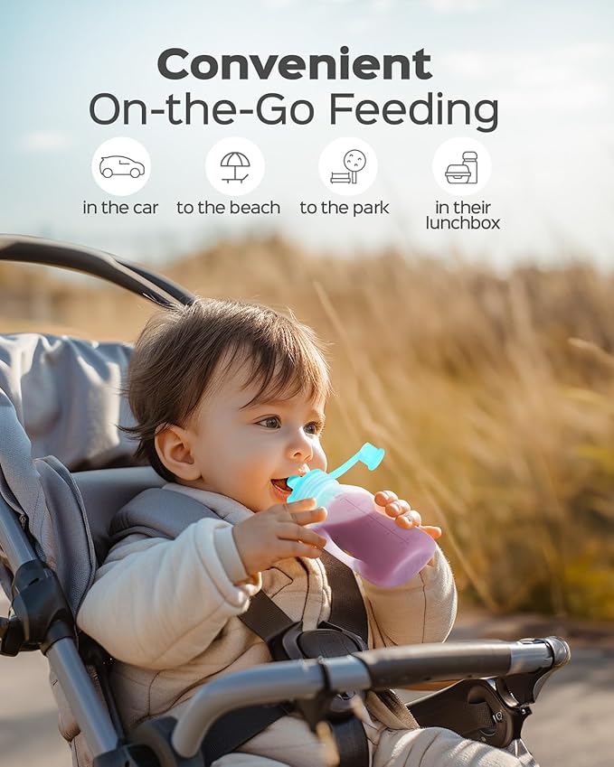 • Nutrition Anytime, Anywhere: These reusable squeeze pouches are ideal for homemade purees, applesauce, yogurt, and more. Perfect for on-the-go meals, outings, and convenient snacking. The leakproof design prevents spills, keeping meals mess-free