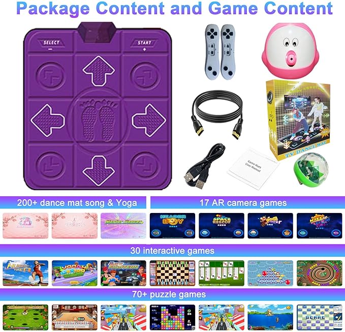 • 【Rich Dance and Games 】The Dance Mat game includes 5 modes, it has 200+ dance mat games, 18 camera AR sports games, 30 interactive sport games, 90+ gamepad puzzle games,10+ sets of yoga and aerobics tutorials. Games include tennis stars, table tennis and other casual games; fruit ninja, undersea adventure and other camera games. YRPRSODF dance mat really get exercise in recreation.