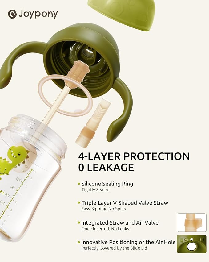 • 【Simple to Use & Clean】Joypony toddler cup is designed for effortless use, featuring easy assembly, disassembly, and cleaning. The wide neck and less parts make it clean easily, simplifying your cleaning routine while promoting your baby's independence and coordination