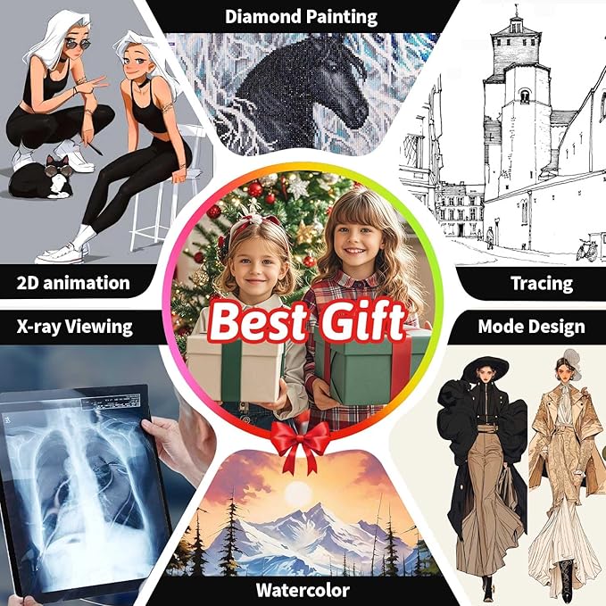 • 【Multiple Uses】Zocelight light Table, suitable for diamond painting,drawing,tracing,animation,sketching,calligraphy,sewing projects,Weeding Vinyl,architectural design,X-ray viewing,and more.art drawing supplies for kids and artists,also the amazing gift for Children's Day, Christmas, birthdays or any other holidays.