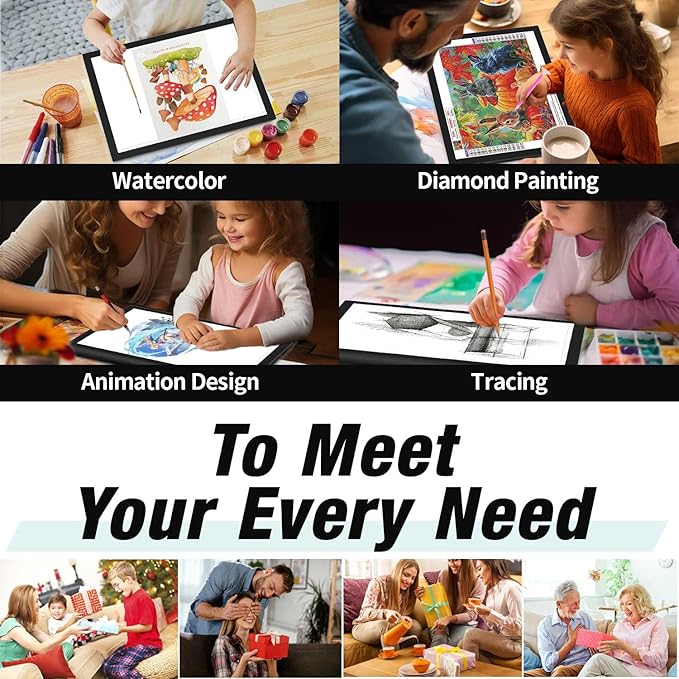 • 【Multiple Uses】Zocelight light pad, suitable for diamond painting,drawing,tracing,animation,sketching,calligraphy,sewing projects,Weeding Vinyl,architectural design,X-ray viewing,and more.art drawing supplies for kids and artists,also the amazing gift for Children's Day, Christmas, birthdays or any other holidays.