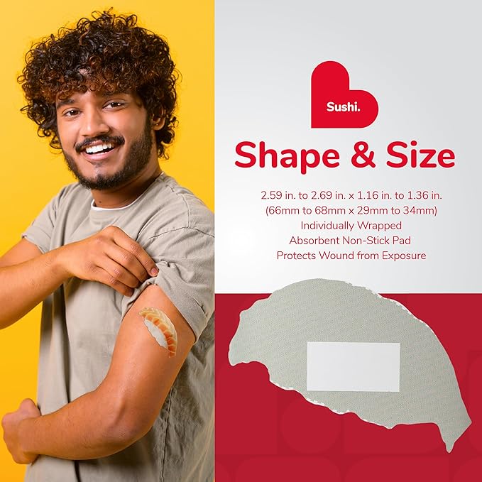 BioSwiss Bandages, Sushi Shaped Self Adhesive Bandage, Latex Free Sterile Wound Care, Fun First Aid Kit Supplies for Kids, 50 Count