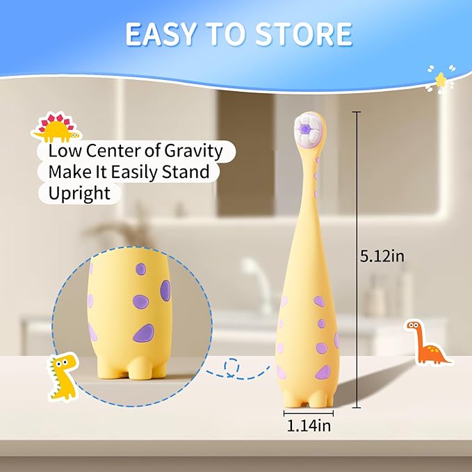 • PACKAGE QUANTITY: 2 dinosaur soft bristle toothbrush in a bag, can be shared or used as a spare; unique dinosaur shape design and beautiful colors are more likely to attract the toddle's eyes, stimulate the toddle's interest in brushing their own teeth