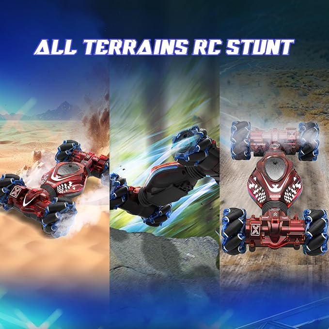 • All-Round Drift Stunt RC Car:4WD gesture sensing stunt car can drive and drift in all directions, 360° rotation, 45° climbing, snaking, double-sided flip, twist into off-road and on-road modes.children to operate this off road stunt car via 3 senstive control modes easily. Loads of fun for your kids.