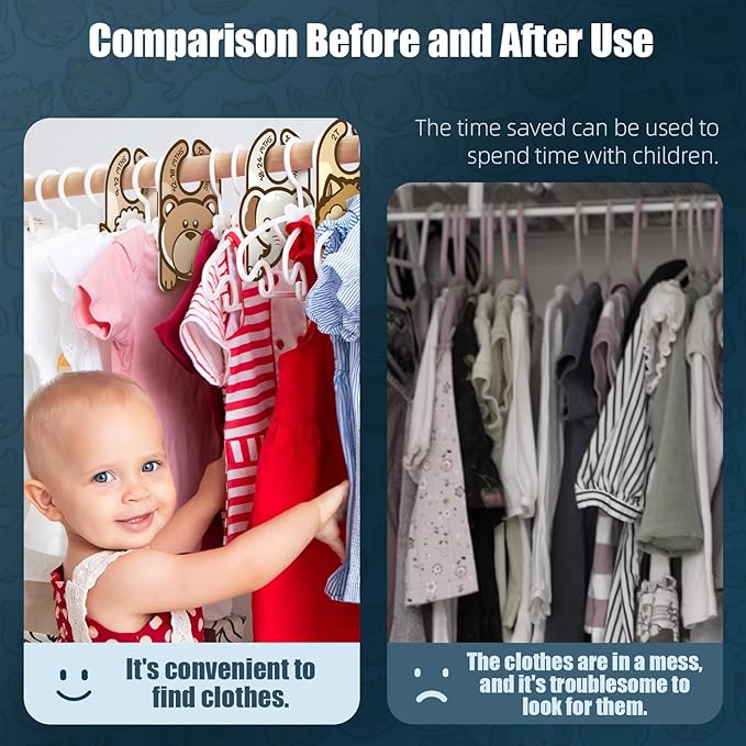 • 【Compact and Lightweight Design】These baby clothes dividers for closet are designed to be just the right size for standard closet rods, ensuring the baby clothes dividers don't take up too much space or add unnecessary weight. The nursery organization’s compact and lightweight nature makes them easy to handle and reposition, so you can effortlessly keep your baby’s clothes neatly organized. The baby size closet dividers are sturdy enough to hold up to frequent use, ensuring that your baby’s closet remains clutter-free and efficient.
